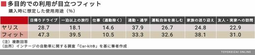 では、ヤリスとフィットを購入した人は、それぞれどこにひかれ、どのような用途で使うことを想定していたのか。市場調査会社のインテージが毎月約70万人から回答を集める、自動車に関する調査「Car-kit®」のデータを基に、それらを細かく見ていきたい。