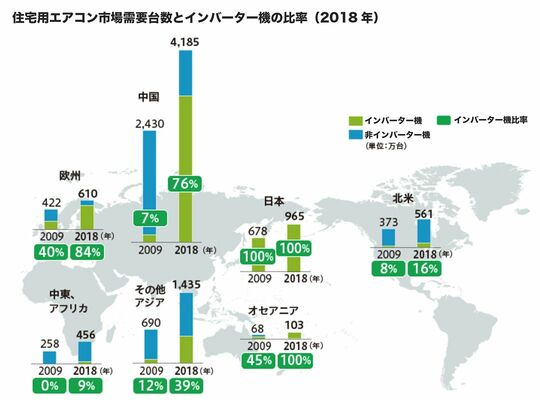 とはいえエアコンは、もはや生活するうえで欠かせないインフラとなっている。そこで、省エネルギー性能の高いインバーターエアコンの普及率が上がれば、エネルギー消費量の抑制、環境負荷の軽減も不可能ではないと期待が高まっているのだ。