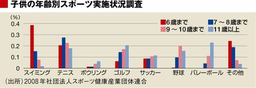 先ほどの「子供の年齢別スポーツ実施状況調査」には、続きのデータがある。7~8歳以上で経験のあるスポーツを見ると、野球がサッカーを逆転しているのだ(下グラフ参照)。サッカーと比べ、遅い年齢で野球を始める子どもたちが多く存在する。