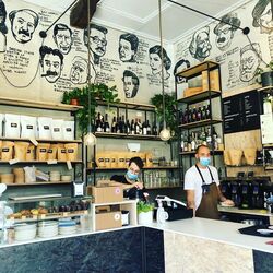 レストランや商店の入り口には必ず消毒ジェルが置かれていて、客は入る前にまず手を消毒する。レストランでは、テーブルとテーブルの距離は開けてあるものの、同じテーブルの人と人の距離は今までどおりだ。