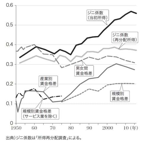 1985年の『国民生活白書』は、戦後40年間の国民生活の変化を跡づけた大部なものだったが、ここには1961年から1983年までの所得と金融資産のジニ係数が示されている。白書が強調したのは、あくまでも、高度経済成長の過程で所得格差と資産格差がともに急速に縮小したということだった。しかしいずれについても、近年はわずかながら格差が拡大していることが控えめに記されている。