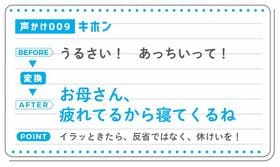 コロナ禍でいつも以上にお子さんと接する時間が長くなる夏休み。「声かけ変換」が毎日の親子コミュニケーションを少しでもラクにするヒントになれば、うれしいです。