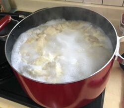 「今晩の夕飯です。おかずですか? ありません。すいとんだけです。1週間の食費は1万円と決めているので。よろこんで食べてくれるのが救いですが、考えてみると(子どもたちのほうから)『すいとんを食べたい』と言われたことは一度もないですね……。子どもたちの栄養は学校の給食が頼りです」