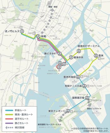 だが、「五輪の幹線道路」として2020年の大会開催前の開通を目指していた環状2号線は、築地市場跡地に建設するトンネルの着工が市場の移転延期により遅れ、トンネルを含む全線開通予定は2022年度にずれ込んだ。環状2号線を主要経路とするBRTの事業計画も2018年8月に改定。運行開始時期は2020年度に延期された。