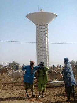 澤田隊員が話を聞いてみると、その家族は、砂漠の中の給水塔のふもとで小売店を営んでいました。給水塔は、地下水をくみ上げるための施設で、西アフリカの乾燥地帯に点在します。ここには、遊牧民族たちが、家畜に水をやるために訪れます。