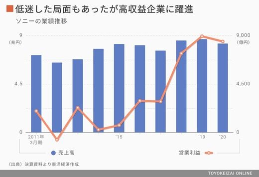 こうしたエレクトロニクス、ソフト事業の改革に加え、CMOSイメージセンサーが世界首位の座を占めるようになり、「ソニーと言えば、半導体」という新しい看板が定着した。