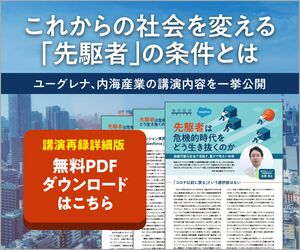 「私が小学校3年生だった1989年は、日経平均が4万円に迫り史上最高値を記録しました。また『IMD(国際経営開発研究所)世界競争力ランキング』で日本はナンバーワン。間違いなく、経済で世界1位の国だったんです。でも30年経った今、日本は過去最低の34位まで落ちました」。世界で初めてミドリムシ(学名:ユーグレナ)の食用屋外大量培養に成功したユーグレナの出雲充代表取締役社長はこのように指摘する。