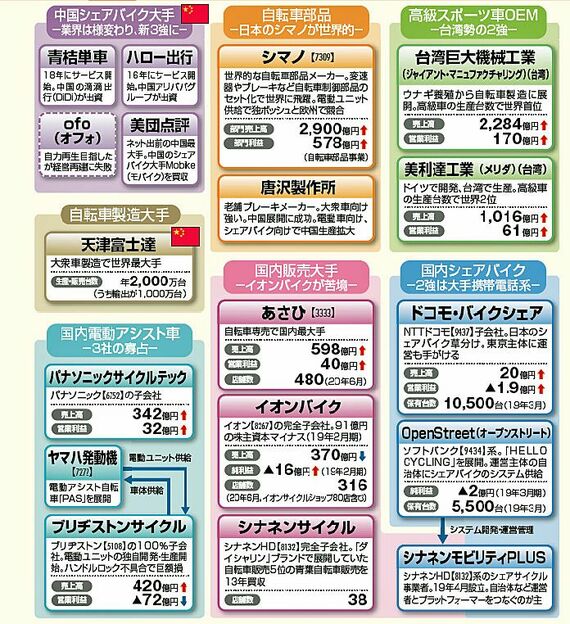 政治・経済・投資 #特設ページ 新型コロナウイルス 前の記事 次の記事 コロナで注目、「自転車」ブームで得するのは誰 あさひ、シマノの株が急上昇、次の勝ち組は? 5分で読める 公開日時:2020/08/28 05:00 西澤 佑介 東洋経済 記者 フォロー 1/3 PAGES 2/3 PAGES 3/3 PAGES 『会社四季報 業界地図 2021年版』の自転車業界地図(抜粋)。これ以外にも、話題の業界から、ニッチな業界、重厚長大の業界まで、173業界が一覧で網羅されている