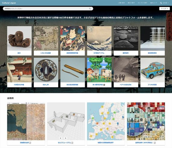 海外の博物館や美術館までも対象とするカルチュラル・ジャパンならではの特徴が、ここにある。約100万件のうち約77万件は国内機関のアイテム。残り約4分の1は、大英博物館やメトロポリタン美術館、アムステルダム国立美術館のほか、EUにおける文化遺産のデジタルアーカイブ「ヨーロピアーナ」、米国デジタル公共図書館「DPLA」など世界各国のデータベースから日本や日本人に関連するアイテムの情報を集約している。