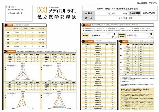 そこで、メディカルラボでは、各大学の出題傾向と生徒の得意分野から合格可能性を見極める私立医学部模試を実施。独自の出題形式と換算基準を基に、学力をスピード、記述力、計算力、思考力などに分類して測定し、その得点結果から「大学別パーソナルスコア」を算出している。自分と相性がよく、合格に近い大学順に、1位から31位までランキングが表示される仕組みだ。