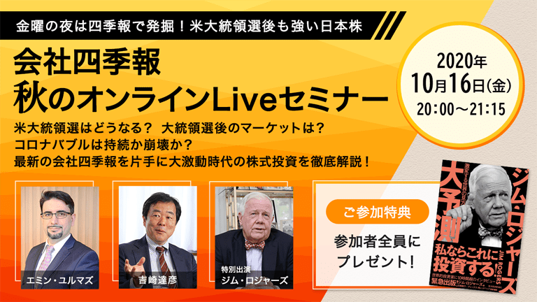 ロジャーズ氏は金銀だけでなく、すでにアジアの航空会社の株式なども取得をしているようですが、皆さんは今後のマーケットをどうお考えになりますか。コロナの状況を予測するのは難しいですが、不動産関連、あるいは観光業や外食関連など、壊滅的な被害を被った業種は最悪期を過ぎたと判断して、お金を少し振り向ける検討をする時期なのかもしれません。