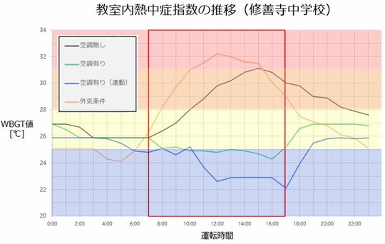 「学校空調は、すでに多くの自治体で設置されています。しかし現場の使用状況を聞くと、先生方が自分の肌感覚でエアコンを調整していることがわかりました。暑さ寒さの感覚は人それぞれですから、明確な基準がない。同じ学校の中でも、ある教室は22℃、隣の教室では28℃とバラバラになりがちです。熱中症対策の意味でも、空調運転の明確な基準が必要ではないかと考えました」