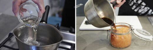 酒、みりん、醤油の量はすべて同量。タレは必ず冷めてからいくらに注ぎます(写真:LEON編集部)