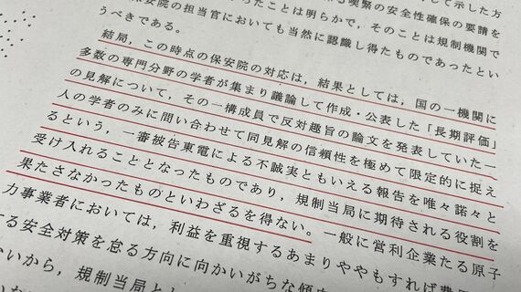 判決文は本文だけでも500ページを超す。原発事故を引き起こした原子力事業者である東電のみならず、規制機関である国の責任についても詳細に検証したうえで丁寧に認定しているためだ。判決文には事故防止の努力を怠った国の責任について次のような記述がある。