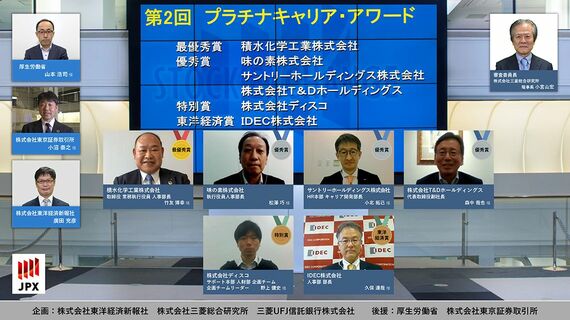 厚生労働省の山本浩司氏は、コロナ禍が働き方の意識、価値観に変化を与え、労働者は自律的なキャリア形成を目指すようになったと指摘。「受賞企業はフロントランナーとして社会を牽引してほしい」と期待。東京証券取引所の小沼泰之氏は「コロナ禍以前から働き方の変化に能動的に取り組んできたプラチナキャリア・アワード応募企業は、持続的成長力を市場に評価され、企業価値を向上できると確信する」と語った。