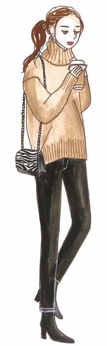 そして、冬のもう1つのおすすめは細いチェーンバッグ。チェーンは、もっさりしがちなニットをシャープに見せます。シルエットが大きくなるコートのときにもぴったりです。
