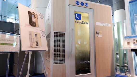富士ゼロックスのココデスクは幅約1.5メートル、奥行き1.1メートル、高さ2.4メートルの大きさで、机や椅子、電源、通信環境などテレワークに必要なツールのほか、空調も整っている。予約は専用アプリで行い、料金も15分250円からと手頃だ。