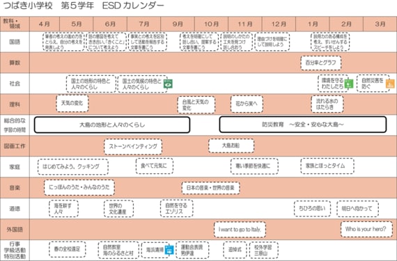 手島氏が開発したツール「ESDカレンダー」を応用して年間の学習のつながりを可視化(提供:大島町立つばき小学校)