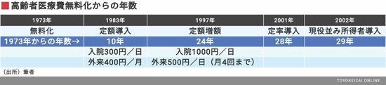 要約すれば、老人医療費無料化という歴史的失策から、定額導入に10年、定率導入に28年を要している。