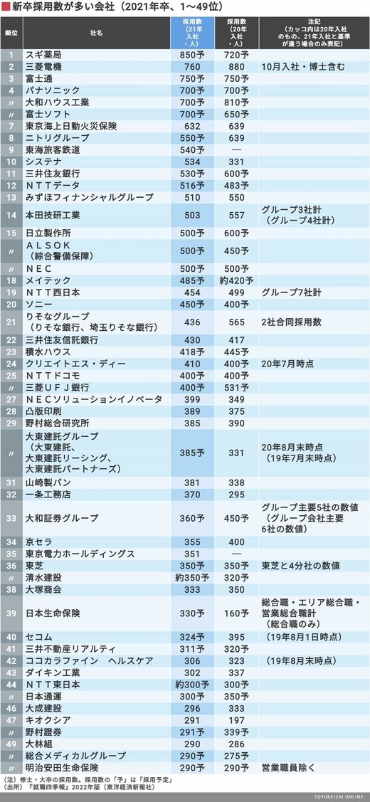 キャリア・教育 #就職四季報プラスワン 前の記事 次の記事 「コロナ禍でも新卒を多く採用する会社」TOP300 1位スギ薬局、2位三菱電機…採用増やす会社も 4分で読める 公開日時:2020/11/27 06:00 小村 圭 東洋経済データ事業局 フォロー 1/8 PAGES 2/8 PAGES 3/8 PAGES 次ページが続きます:【新卒採用が多い会社51~100位】 4/8 PAGES 5/8 PAGES 6/8 PAGES 7/8 PAGES 8/8 PAGES