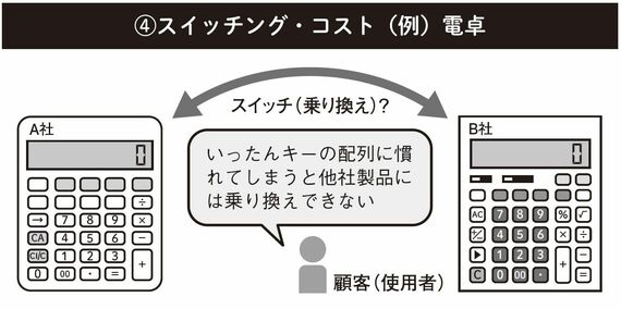顧客がいったんある企業の製品・サービスを使って慣れてしまうと、他社の製品・サービスに乗り換えるには、時間、手間なども含めたコストがかかります。