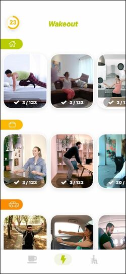「Wakeout!」は、ロックダウンで家にいる時間が長くなった新しい生活様式の中で、ユーモラスなエクササイズを行い、体を起こし、心を解きほぐすアプリとして高い評価を受けた。