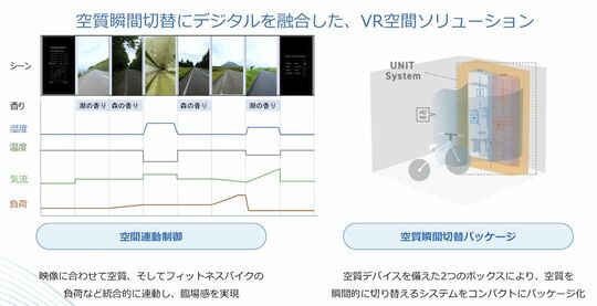 「このVR展示は、『空質瞬間切替パッケージ』によって実現しています。低温高湿と高温低湿の2種の空質デバイスを備えたボックスを用意することで、その名のとおり空気質を瞬間的に切り替えることを可能にします」(小笠原氏)
