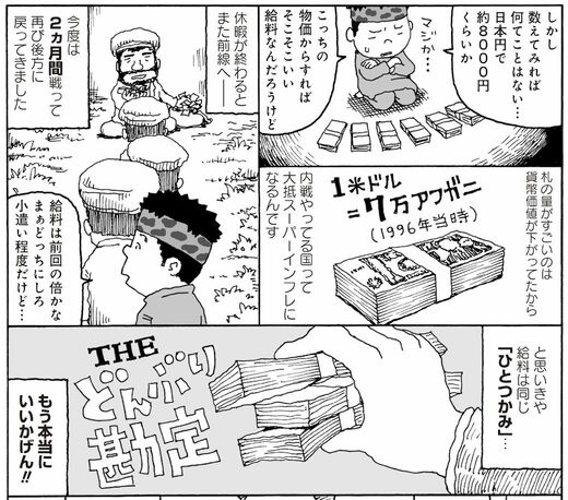 「アフガニスタンのときは1回にもらう給料は8000円ぐらいでしたね。雑にカバンからわしづかみにしたアフガニー(アフガニスタンの通貨単位)札束を手渡されました。その給料の出どころもどこからなのかはわかりませんでした」