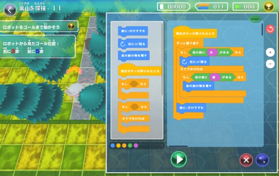 ビジュアル的にプログラミングの基本を学ぶところから本格的なテキストコーディングまで段階的に学べる教材が必要だと考えて設計しています。それこそ、ゲームにも使われる3Dグラフィックを採用し、パズルを解く感覚でプログラミングを駆使して課題を解決する面白さを体感できます。また、子どもの学習進捗に応じたさまざまなモードがあり、ゲームのようにスコアを競ったり楽しんだりしながら「自学自習」できる工夫を凝らしました。