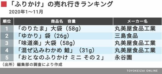 ふりかけを使うシーンには、弁当やおにぎりなどもある。その機会が減ったのだ。