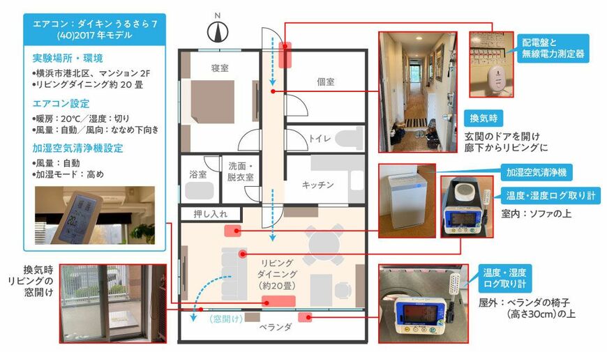 換気については、ダイキンがWebサイトで推奨している換気法を実践し、部屋の対角にある玄関のドアとリビングの窓を開けるようにしているそうだ。