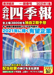 12月16日に発売された『会社四季報』2021年1集新春号では、今期配当予想と予想株数(自己株、優先株などを調整したもの)をベースに年間の配当総額を算出。アベノミクス初期の2013年度から2015年度までの3期の配当総額の平均からの増加率と併せて、全上場会社について調査し掲載している。