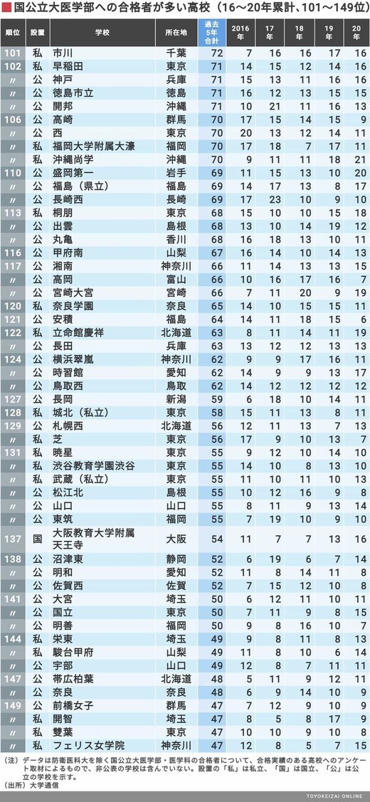 キャリア・教育 「国公立大医学部の合格者が多い学校」TOP200校 5年間累計で算出、1位東海、2位灘、3位洛南… 6分で読める 公開日時:2020/12/25 05:40 井沢 秀 大学通信 取締役情報調査・編集部部長 フォロー 1/7 PAGES 2/7 PAGES 3/7 PAGES 4/7 PAGES 5/7 PAGES 6/7 PAGES 次ページが続きます:【最後に151~200位】 7/7 PAGES