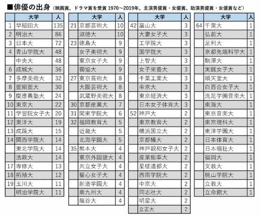 俳優と出身大学に関係を見いだすことはできるだろうか。
