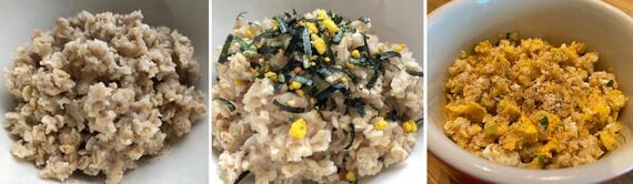 あとは、おかずと一緒に食べればいいという。ふりかけでも納豆でも、カレーパウダーでも、ジャンクでも構わない。むしろニオイが気になる人は味の濃いものと合わせるのがいいという。