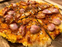 糖質はたったの約7g! 味も市販のピザと遜色のないウマさだ。おからパウダーがない人は大豆粉やプロテインパンケーキの粉で代用するといいという。