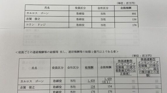ところが「カルロス・ゴーンに呼ばれて、『志賀には見せたくない。これからは取締役の増減率の平均に合わせて自らの報酬を増減させるから、見せるまでもない。それでもよいか』と言われた」(志賀氏)。