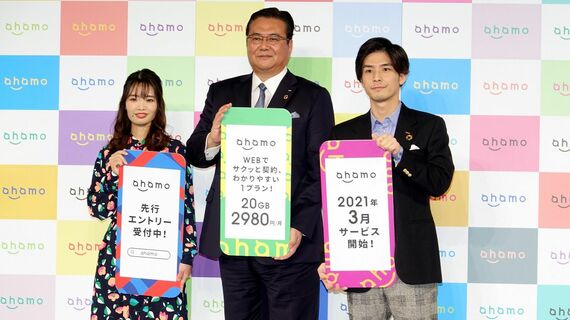 KDDIが1月13日に新プランを発表し、ドコモ、KDDI、ソフトバンクの3社の20GBプランが出揃った。ドコモはahamo、KDDIはpovo(ポヴォ)で、それぞれメインブランドの料金プラン、ソフトバンクはSoftBank on LINE(正式名称は未定)で、ソフトバンクやワイモバイルと並ぶもう1つのブランドという位置づけだが、いずれもデータ容量が20GBで、オンライン専用プランという点は同じだ。料金はドコモのahamoとソフトバンクのSoftBank on LINEが2980円、auのpovoが2480円だ。