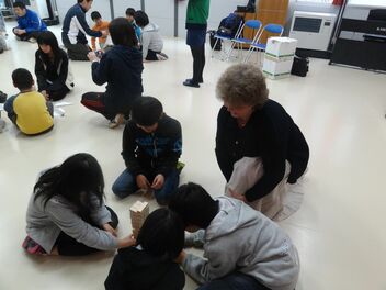 遠藤潔校長先生が私たちの訪問を温かく迎えてくださった後、大教室に入ると、そこには26人の児童が床に並んで座っていました。訪問日の2014年3月20日は同小学校卒業式の翌日であったため、1~5年生のほぼ全員が参加していました。