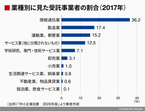 生産性の低い業種ほど、下請け比率も低い