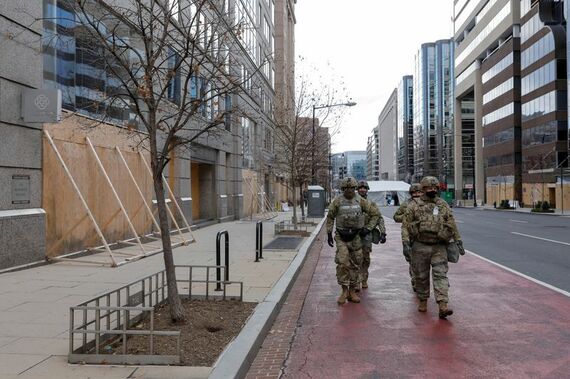 [ワシントン 20日 ロイター] - バイデン米新大統領の就任式が行われた20日、首都ワシントンでは州兵など2万5000人以上を動員して厳戒態勢が敷かれ、大統領就任を祝福する市民らの姿が見られない異例の式典となった。