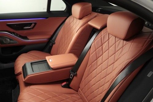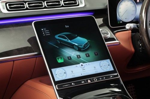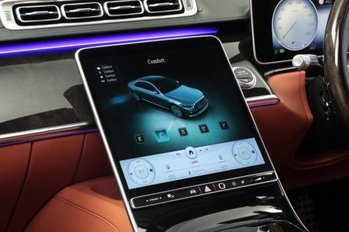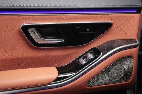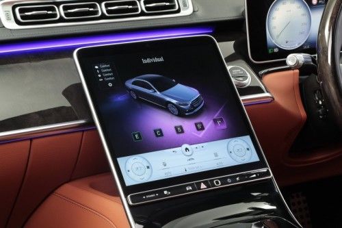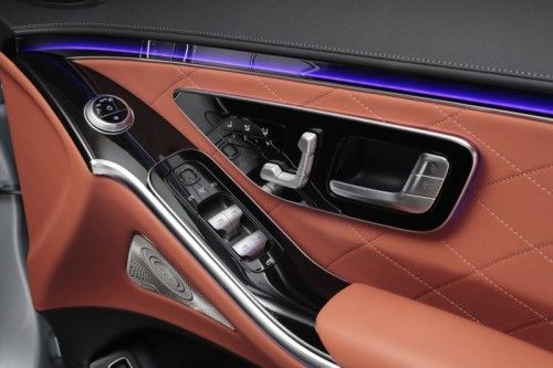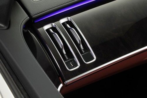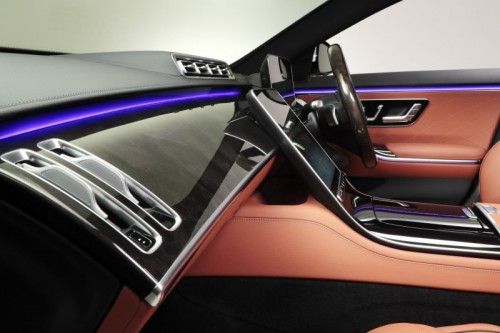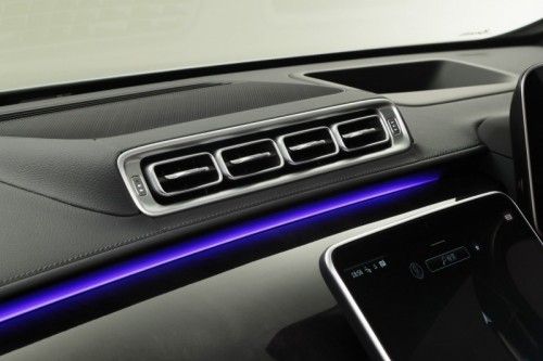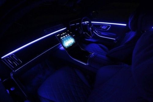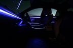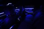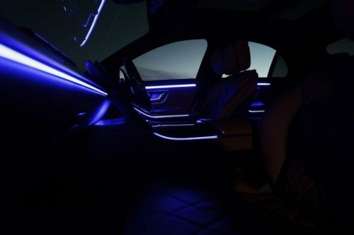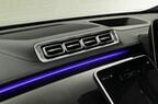 今やラグジュアリーセダンになくてはならない「アンビエントライト」は大幅に改良され、LED光源の数が40個から標準ボディで247個、ロングボディで263個に。最大200カンデラという明るさは、先代の10倍にもなり、周囲の明るさに応じて日中モードと夜間モードが自動で切り替わる。