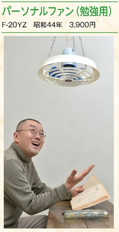 なにゆえ「勉強用」なのか。この扇風機を天井から吊るして風を送ると、頭が涼しくなり勉強がはかどるので、勉強用と称したそうです。「涼風の中で楽しく勉強、成績もあがります」(全製品カタログ)。ホンマに成績が上がるのか、そのエビデンスはあるのか、などと無粋なことは言わぬが花。