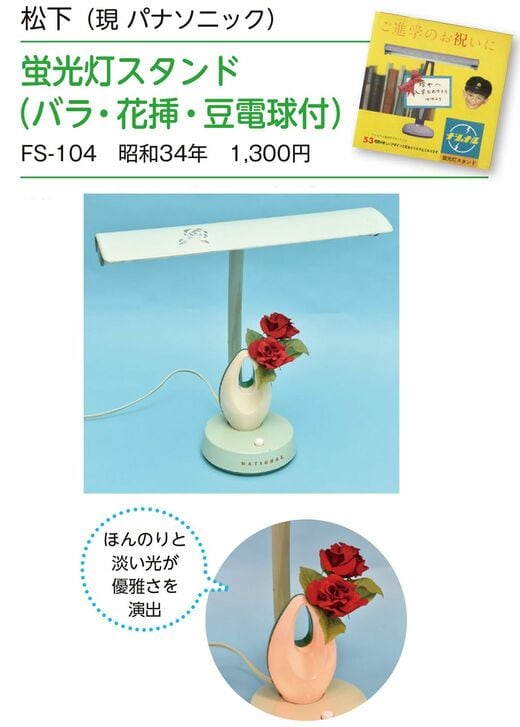 そんなバラブームのなか、発売されたこの蛍光灯スタンド。優雅で気品ある雰囲気は好評だったようで、バラ付きスタンドはモデルチェンジを経ながら長く発売されました。