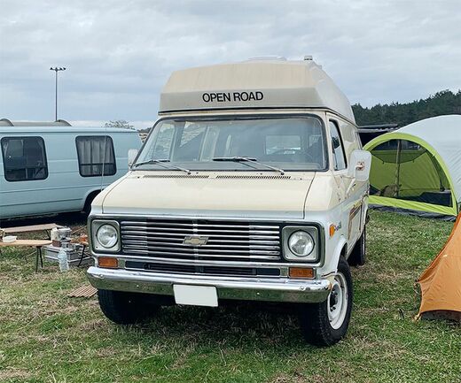 Instagramで@neru0414のアカウントから自身のアウトドアライフを発信している重弘剛直さん。年30泊を自然で過ごすという重弘さんの愛車は1975年式のシェビーバンだ。