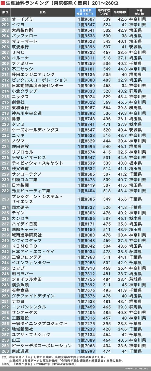 政治・経済・投資 #賃金・生涯給料ランキング 前の記事 次の記事 生涯給料「東京除く関東311社」最新ランキング 対象企業の生涯給料を平均すると2億1261万円 3分で読める 公開日時:2021/02/11 05:50 東洋経済オンライン編集部 フォロー 1/7 PAGES 2/7 PAGES 3/7 PAGES 4/7 PAGES 5/7 PAGES 6/7 PAGES 次ページが続きます:【最後に311位までのランキング】 7/7 PAGES