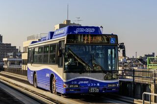 いや、一見すると、どころか本格的にバスである。実際に小幡緑地から先はどこにでもあるような路線バスとして一般道を走っている。しかし、大曽根―小幡緑地間は違う。高架の専用施設の上を路面上に設けられたガイドに沿って走る新交通システムだ。