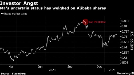 アリババ傘下のフィンテック企業アント・グループの上場は昨年11月に突然中止。率直な物言いで知られる馬氏の居場所が確認できなかったことから、拘束や資産没収もあり得るとの最悪のシナリオを想定する向きもあった。