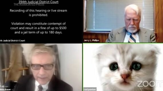 通常、猫に法廷弁論は許されていない。猫の正体は、テキサス州プレシディオ郡の弁護士ロッド・ポントン氏。テキサス州第394区地方裁判所が行ったリモート裁判で、ビデオ通話システムZoom(ズーム)の猫フィルターを外せなくなっていたのである。