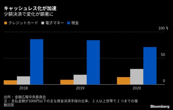 政府は国内のキャッシュレス決済比率を現状の25%から2025年までに約40%に高める目標を掲げ、20年6月までの9カ月間、キャッシュレス決済の利用でポイントを還元する施策も実施した。新型コロナ禍で人との接触をなるべく避けることが求められていることも、キャッシュレス化の普及を後押しする。